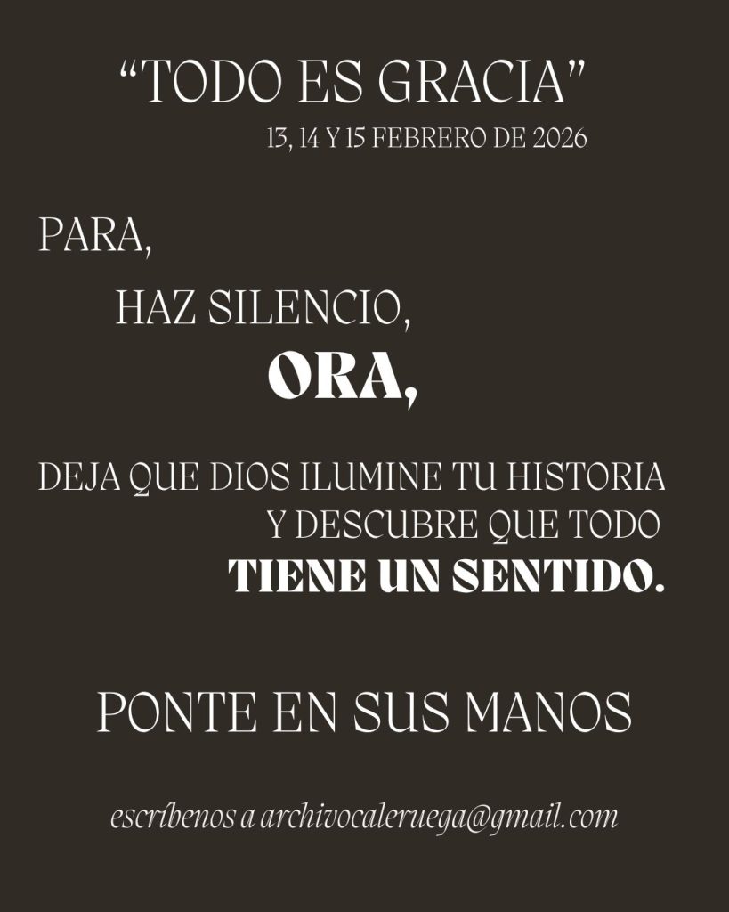 Es una invitación abierta a dejar que la luz ilumine tu propia historia y a descubrir el sentido profundo de cada vivencia poniéndote en Sus manos. Si tienes entre 18 y 35 años y sientes la llamada a compartir estos días de reflexión y comunidad, no dudes en solicitar más información o reservar tu plaza escribiendo a archivocaleruega@gmail.com.
